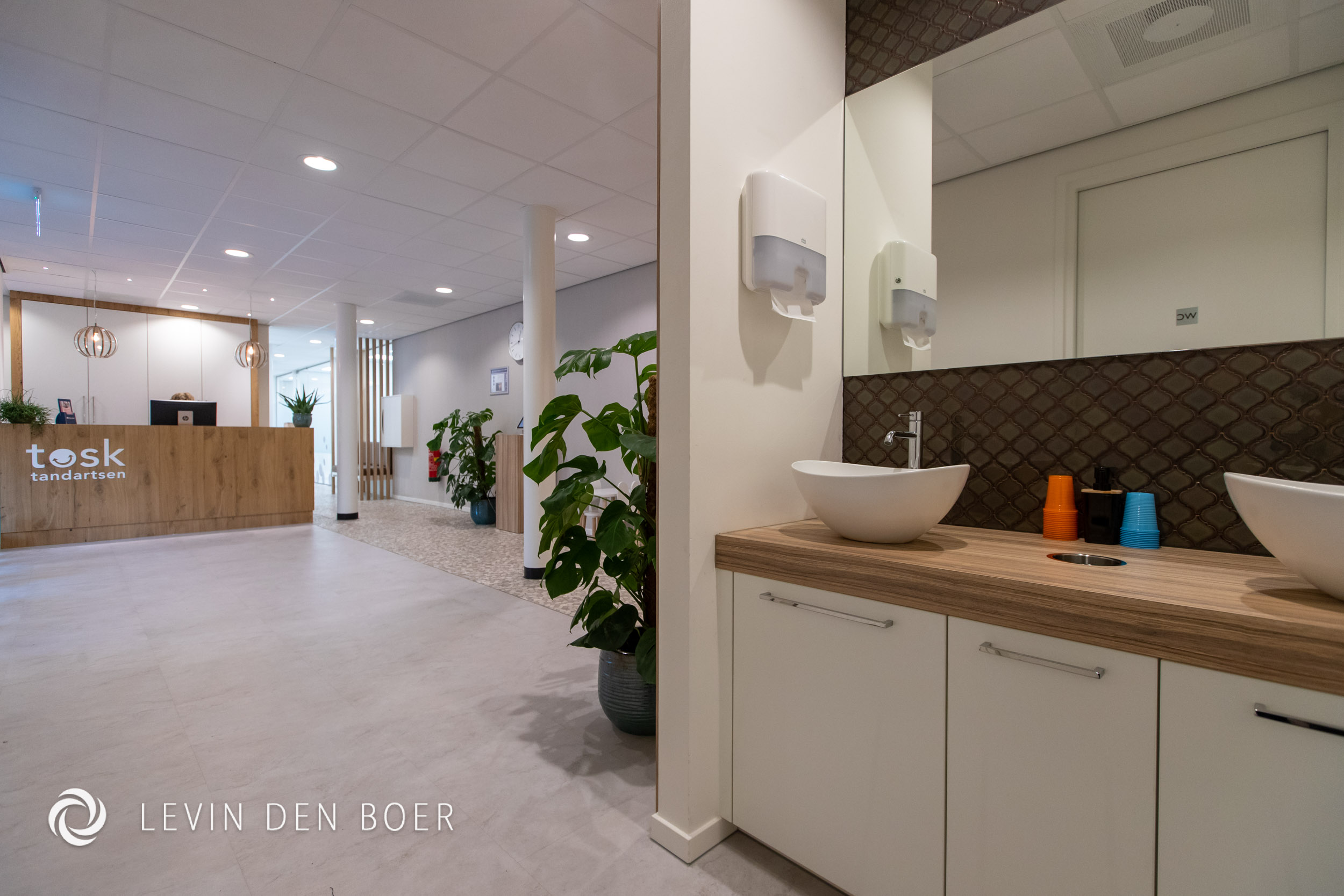 Uiteindelijk is Tosk in acht weken verbouwd. De praktijk heeft vijftien werknemers in dienst en beschikt over vijf behandelkamers. Daarnaast beschikt de praktijk over een sterilisatieruimte, een back-office, een poetshoek en uiteraard een wachtruimte. In het pand zijn ook een orthodontiepraktijk en fysiopraktijk gevestigd.