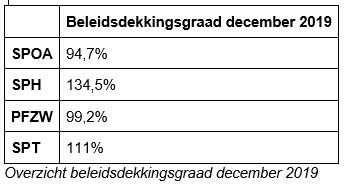 Een sterke dekkingsgraad zou de eerste klap van een crisis kunnen opvangen. Helaas stond SPOA er voor de crisis al niet goed voor. De beleidsdekkingsgraad van SPOA, ofwel het gemiddelde van de laatste twaalf dekkingsgraden, was in december 2019 94,7% . Dit is nipt boven de wettelijk gestelde norm van 90% en ruim onder de 105% die De Nederlandsche Bank het pensioenfonds stelt als ondergrens voor verplicht korten.