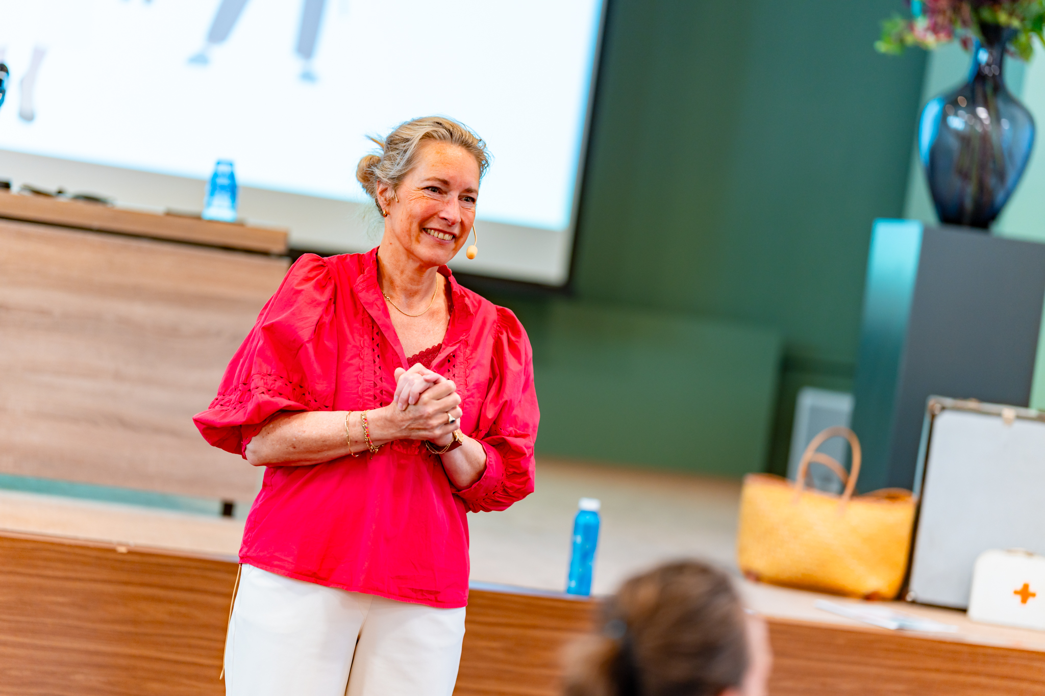 Charlotte van den Wall Bake tijdens de Dag van de Praktijkmanager 2025. ‘Ik zou professionals helpen door in te zetten op stresspreventie, grotere weerbaarheid en weer duidelijke grenzen gaan stellen.’ (Foto: Jitske Seckel)