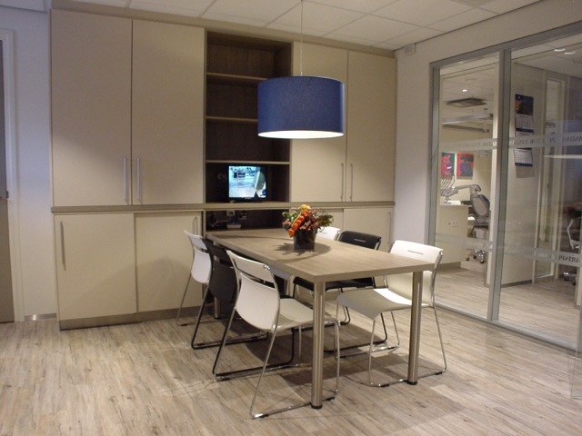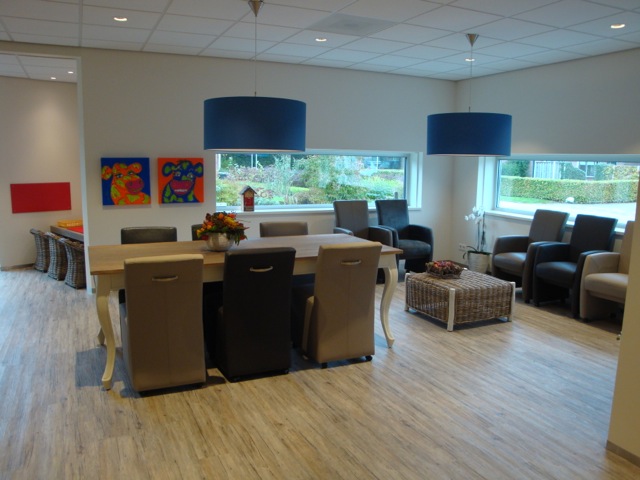 ‘De sfeer van de praktijk is huiselijk. Het is een dorpspraktijk en iedereen kent elkaar. Daarom staat in de wachtruimte een grote tafel met stoelen, waar mensen bij kunnen kletsen. Verder is de wachtruimte voorzien van een lectuurrek met wel twintig verschillende magazines over natuur en milieu, omdat dit voor ons heel belangrijk is. Natuurlijk hebben wij daarnaast ook autobladen en andere magazines. Verder hebben wij gekozen voor zo min mogelijk tandheelkundige reclame. Zo staat in de wachtruimte een televisie waarop gewone programma’s worden uitgezonden. De tandheelkundige informatie komt pas in de behandelkamer zelf.’
