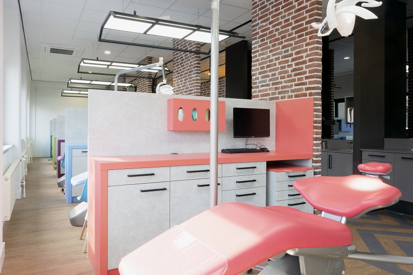 De behandelruimte en wachtkamer in Orthodontie Zwielich in Osdorp. Foto: Orthodontie Zwielich